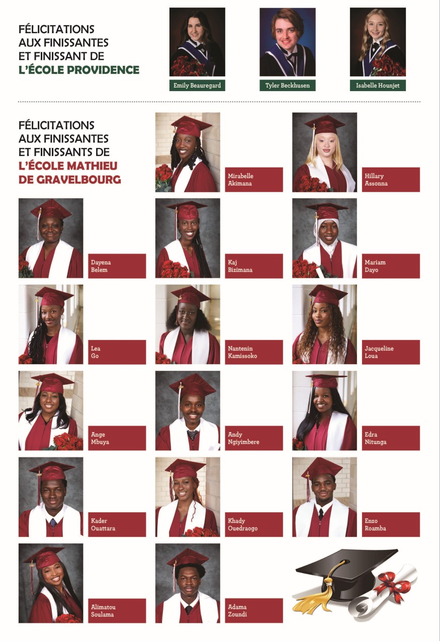 Félécitations aux finissantes et aux finissants de la cohorte 2025 des écoles Providence de Vonda et Mathieu de Gravelbourg !