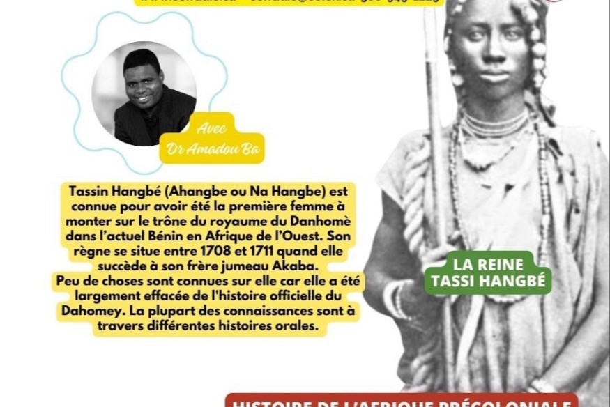 L'histoire peu connue de la reine Tassi Hangbé. Tassin Hangbé (Ahangbe ou Na Hangbe) est connue pour avoir été la première femme à monter sur le trône du royaume du Danhomè dans l’actuel Bénin en Afrique de l’Ouest. Son règne se situe entre 1708 et 1711 quand elle succède à son frère jumeau Akaba. Peu de choses sont connues sur elle car elle a été largement effacée de l'histoire officielle du Dahomey. La plupart des connaissances sont à travers différentes histoires orales.