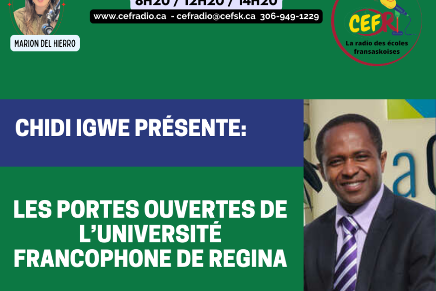 Chidi Igwe, gestionnaire de la communication et du marketing de l'université francophone de Regina, nous présente La Cité, ses programmes d'études, ses bourses et ses activités étudiantes.