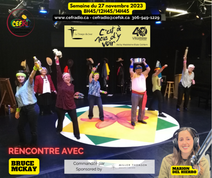 La Troupe du jour présente son nouveau spectacle "C'est à nous d'y voir", écrit par Madeleine Blais-Dahlem et mis en scène par Bruce McKay avec Madeleine Blais-Dahlem, Réjean Denis, Gail Enright, Marielle Gauthier, Maguelone Goudoux, Shannon Lacroix, Nicole Lavergne Smith, Alexis Olfert, Kath Stevenson et Tristen Durocher.