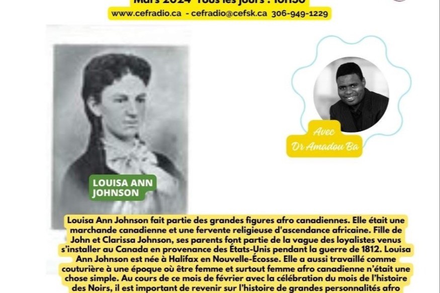 Louisa Ann Johnson fait partie des grandes figures afro canadiennes. Elle était une marchande canadienne et une fervente religieuse d'ascendance africaine. Fille de John et Clarissa Johnson, ses parents font partie de la vague des loyalistes venus s’installer au Canada en provenance des États-Unis pendant la guerre de 1812. Louisa Ann Johnson est née à Halifax en Nouvelle-Écosse. Elle a aussi travaillé comme couturière à une époque où être femme et surtout femme afro canadienne n’était une chose simple.