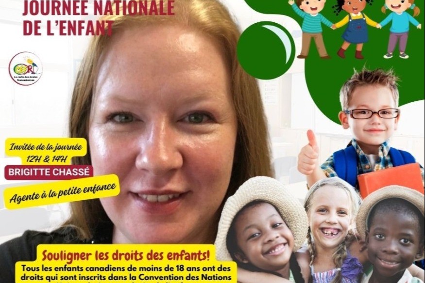 Pour la journée du 20 novembre, consacrée la Journée nationale de l’enfant, nous avons comme invitée Mme Brigitte Chassé, Agente à la petite enfance. Cette journée a pour but de souligner les droits des enfants. Tous les enfants canadiens de moins de 18 ans ont des droits, dont quelques exemples sont présentés ci‐après. Tous tes droits sont inscrits dans un document appelé la Convention des Nations Unies relative aux droits de l’enfant.