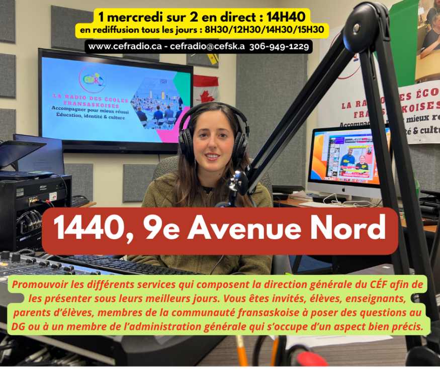 Cette émission s’adresse directement aux élèves, aux parents d’élèves, aux enseignants et à la communauté fransaskoise et au-delà tous les francophones.