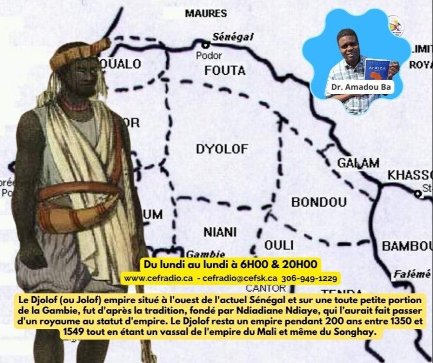 Le Djolof (ou Jolof) était un empire situé à l'ouest de l'actuel Sénégal et sur une toute petite portion de la Gambie qui d'après la tradition fut fondé par Ndiadiane Ndiaye, qui aurait fait passer le Djolof d'un royaume à un statut d'empire. Le Djolof resta un empire pendant 200 ans entre 1350 et 1549 tout en étant un vassal de l'empire du Mali et même du Songhay. Au cours de cette émission, nous allons examiner la fondation du Djolof et son extension pour devenir empire. Ensuite nous parlerons de son organisation politique, économique et socio-culturelle. Enfin nous verrons comment cet empire a décliné pour redevenir à nouveau un royaume.