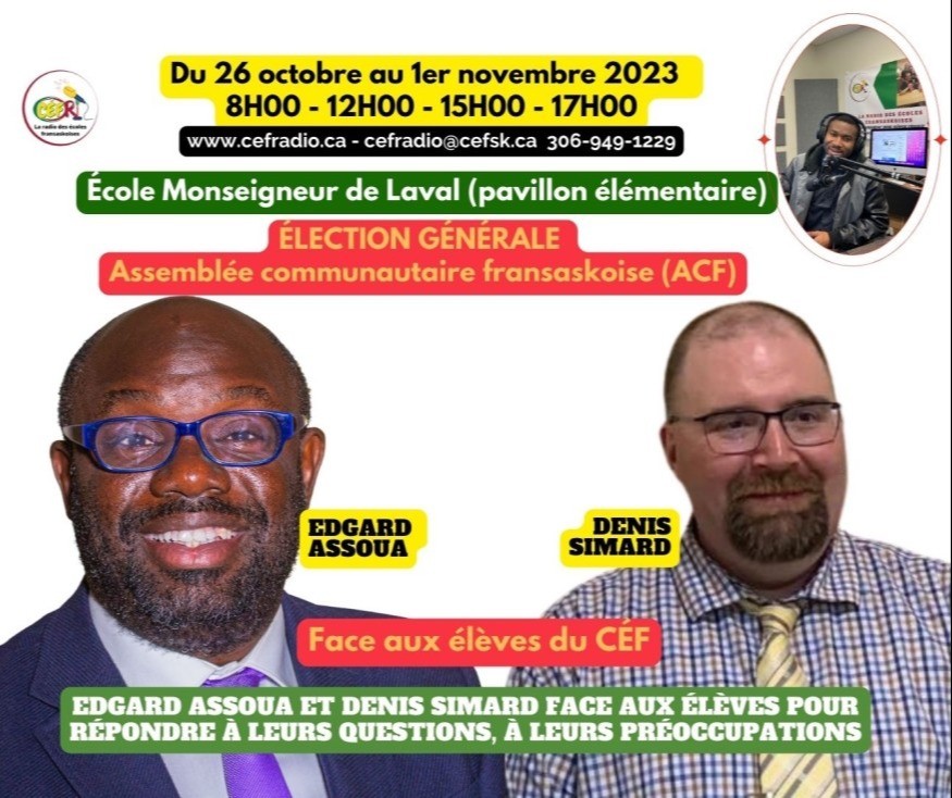 En direct de l’École Monseigneur De Laval (Pavillon élémentaire) le débat qui opposera les deux candidats à la présidence de l’ACF. Le scrutin se tiendra dans l'ensemble des districts électoraux le 1 novembre 2023 avec une journée de vote par anticipation le 28 octobre 2023. Edgard Assoua et Denis Simard seront face aux élèves pour répondre à leurs questions, à leurs préoccupations.