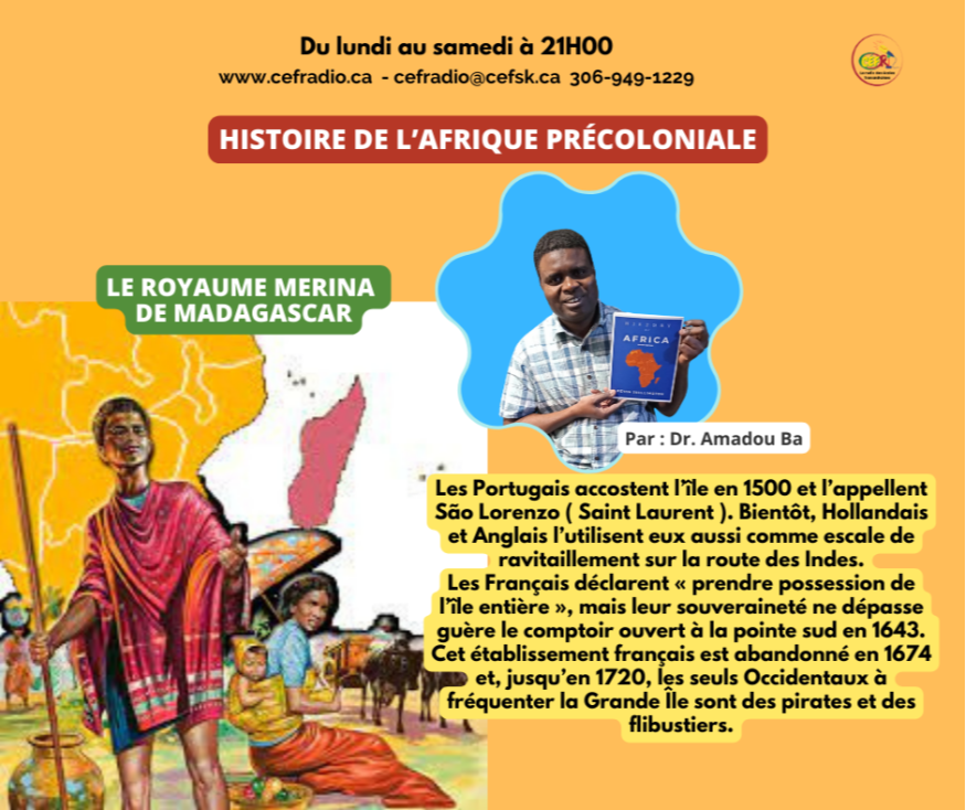 Vers le XVe siècle, les Merina qui s’étaient établis sur les côtes est de Madagascar après des migrations en provenance de l’Indonésie et de la Malaisie des siècles plus tôt, quittent les régions côtières du Sud-Est pour s’installer sur les Hautes Terres centrales. Vers 1530, Andriamanelo fonde la dynastie des Andriana. La légende veut qu’il ait appris à ses sujets à forger le fer pour fabriquer sagaies, haches et coutelas. Ralambo (1575-1610) nomme le royaume « Imerina » (« d’où la vue porte loin »), le structure et l’étend au détriment de autochtones connus sous le nom de Vazimba. Il instaure des impôts et organise la noblesse en différents échelons. Lui succède son deuxième fils, Andrianjaka, qui transporte sa capitale à Analamanga, la future Antananarivo. Andriamasinavalona (1675-1710) partage le royaume entre ses quatre fils. L’Imerina (région habitée par les Merina) subit alors près d’un siècle de division et de luttes intestines. En 1787, l’avènement d’Andrianampoinimerina à Ambohimanga marque un tournant dans l’histoire de l’île. Andrianampoinimerina (1787 - 1810). Ayant réussi, vers 1795, à s’imposer comme seul souverain de l’Imerina, il transfère sa capitale à Antananarivo et poursuit une politique de développement économique. La maîtrise de l’hydraulique agricole, l’instauration de la corvée et de marchés hebdomadaires favorisent la croissance économique et démographique. Son ambitieux étant d’« avoir la mer pour seule limite de sa rizière », il soumet ses voisins par la diplomatie ou par la force et nomme les princes locaux gouverneurs vassaux afin d’assurer l’ordre dans les territoires conquis. A sa mort en 1810, Andrianampoinimerina laisse un État organisé dont l’administration s’étend sur près de la moitié de l’île. Son fils et successeur Radama Ier (1810-1828) perpétue sa politique d’unification, mais se distingue par son ouverture sur l’occident.
